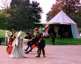 | All men would be expected to have skill at arms: the peasantry were enouraged to engage in archery and used a variety of weapons such as maces, pikes and axes; others studied swordsmanship which demanded a thorough training. To learn more about the daily activities of the medieval and Tudor periods which REs Miranda engaged in, follow the links at the left. |