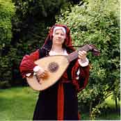 | Many people played music but only a gentlwoman would possess an instrument such as a lute. The strings were made of cat gut and are arranged in pairs. It was usual to tune the highest string to its limits and much time was spent in making the tuning of the pairs of strings accord using the simple wooden tuning pegs. Such was the value of the strings that a set of "minnikins", the highest strings, was a gift that Elizabeth I would not disdain. |
