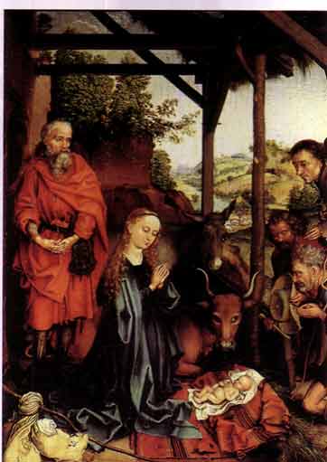 | The "Fore and Aft" bag is another form of double-ended bag which appears to be side-opening: it can be seen in Martin Schongauer's Nativity (c.1480) |