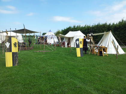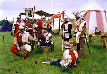 | Res Miranda was a small re-enactment group which started from a few family members who tried the “Kentwell Experience”, liked it, went on to join “Heathcliff Heroics” and did some wonderful Elizabethan events for the Jubilee year which included some drama and the following year blossomed into courtiers of Henry VIII. The addition of local members and gradual creation and purchase of authentic tents and artifacts lead to the formation of Res Miranda as an independent group in 2004. Much research was done by all the members but nothing can beat wearing the authentic costume, drawing a bow, learning to wield a sword, cook, and follow the pastimes of singing, dancing, storytelling etc. The group appeared at Oxburgh Hall, Hever, Dover, Bodiam and Carew castles – amongst many other wonderful places, its members constantly honing and adding to their skills. They continued to appear with Heath’s company from time to time and in 2005, in addition to their paid engagements, the group joined the Medieval Siege Society. This, being the largest re-enactment society in the UK, offered an opportunity to enjoy the social life, large-scale battles and a less stressful programme as, instead of having every moment mapped out, it was necessary only “live authentically”. The MSS is broken up into separate households. making all the battle situations as authentic as possible and Res Miranda was welcomed into the Hartley Household with whom the members enjoyed good comradeship and well-organised fighting with an excellent safety record. By 2008, most of the members being young, had inevitably left to take further education and are now employed in various professions in different parts of the country. |