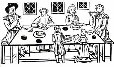 | Children had to stand in the presence of their elders and only sit if invited to do so. Sometimes they ate at table standing up: |
