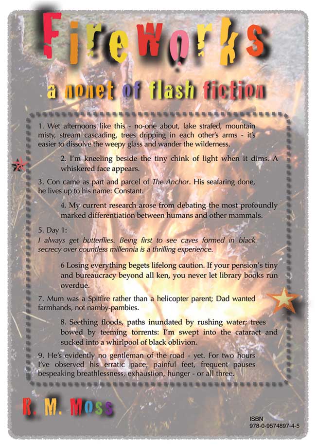 Recently published: Fireworks - A Nonet of Flash Fiction (ISBN 978-0-9574897-4-5) paperback (ISBN 978-0-9574897-5-2) ebook