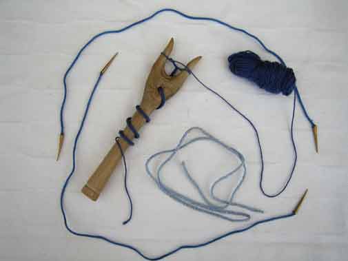 fastened with “points”: a length of lucet cord with an “aiglette”