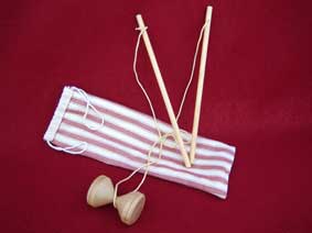 | Diabolo came to England from China and was played at the French and English courts in the latter half of the 15th century. It was known as the "Flying Cone". THe game became very popular during the French revolution (from 1789) and was then known as "Thye Devil on two sticks". Fashionable ladies and gentlemen were playing it in 1796 and Napoleon enjoyed the game. In 1820, as "le Diable" the craze spread through Europe. |