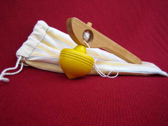 | The earliest tops may have originated in Japan. Clay tops have been found at Ur in levels dating from the fourth millenium BC. The Greeks had tops in 579 BC and the Romans in 27BC. They are a wordlwide toy of all periods.They are illustrated in European manuscripts from as early as the 13th century. Whips in the 14th - 16th century are often depicted with three or two ends, knotted as in a scourge. It is thought that they this made the top a popular toy during Lent. It is documented that adults played with tops in the 16th century. |