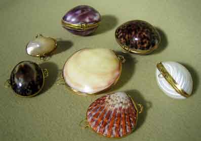 | Shell boxes: 7 large; 3 medium scallop-shape and 3 small white ones left £4.50 each |