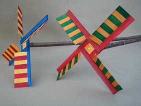 Our windmills are painted on both sides for the pleasure of the holder and the watcher. They are secured with a long pin which we recommend you glue in place. |