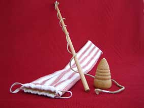 | Hoops are ancient toys known to have been used by the Egytians and Greeks. They are another toy which is known throughout the world. We know they were popular in the middle ages. A 16th century Flemish calendar shows them for the month of February. Their use involves plenty of running so they were a good toy for the colder months. The hoops are 24 inches in diameter and are supplied with two sticks - one of dowel and one a natural, hazelwood stick. |